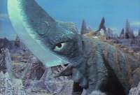 Attack Of The Monsters (U.S. Version)(1969)$19.99 - Free Shipping In The USA aka's: Gamera Tai Daikaijū Giron/Gamera vs. Guiron, Giant Evil Monster/Gamera vs. Guillon/ Gamera vs. The Giant Evil Beast Guiron/Gamera vs. The Devil-Beast Giron/ガメラ対大悪獣ギロン Three children, two boys and a girl, stumble upon a flying saucer. The boys both step into the ship without hesitating and are whisked away to a planet in Earth's orbit, but on the exact opposite side of the Sun. Inhabiting this planet are two women (named Barbella and Flobella) who hypnotize the children to discover they fantasize mainly about Gamera, their favorite super turtle. It is later revealed that the spacewomen simply want to eat the brains of the two kids. Back home, no one will believe the little girl's story of alien abduction, not even Officer Kondo. Finally, Gamera rescues the children while fighting Guiron, a monster with a giant knife-like head which can also fire deadly cutting projectiles. After a fierce battle, Gamera eventually kills Guiron while doing gymnastics on a parallel bar and then finally is able to take the children back home. Stars Nobuhiro Kajima, Miyuki Akiyama, Christopher Murphy and Edith Hanson. This is the English language version of Gamera vs. Guiron (also available here at SSV). This version includes the very rare knife cutting battle between the monsters Guiron and Gayos, which was cut from the original A.I.P. print due to the violent nature of the sequence. ![]() ![]() Gamera vs. Guiron, Giant Evil Monster (Japanese Version)(1969)$19.99 - Free Shipping In The USA aka's: Gamera Tai Daikaijū Giron/Attack Of The Monsters/ Gamera vs. Guillon/ Gamera vs. The Giant Evil Beast Guiron/Gamera vs. The Devil-Beast Giron/ ガメラ対大悪獣ギロン Three children, two boys and a girl, stumble upon a flying saucer. The boys both step into the ship without hesitating and are whisked away to a planet in Earth's orbit, but on the exact opposite side of the Sun. Inhabiting this planet are two women (named Barbella and Flobella) who hypnotize the children to discover they fantasize mainly about Gamera, their favorite super turtle. It is later revealed that the spacewomen simply want to eat the brains of the two kids. Back home, no one will believe the little girl's story of alien abduction, not even Officer Kondo. Finally, Gamera rescues the children while fighting Guiron, a monster with a giant knife-like head which can also fire deadly cutting projectiles. After a fierce battle, Gamera eventually kills Guiron while doing gymnastics on a parallel bar and then finally is able to take the children back home. Stars Nobuhiro Kajima, Miyuki Akiyama, Christopher Murphy and Edith Hanson. This is the Japanese language version of Attack Of The Monsters (also available here at SSV). (In Japanese language, with English subtitles). This film comes from a rare widescreen import print, which is of far superior picture quality to the U.S. version. ![]() ![]() |